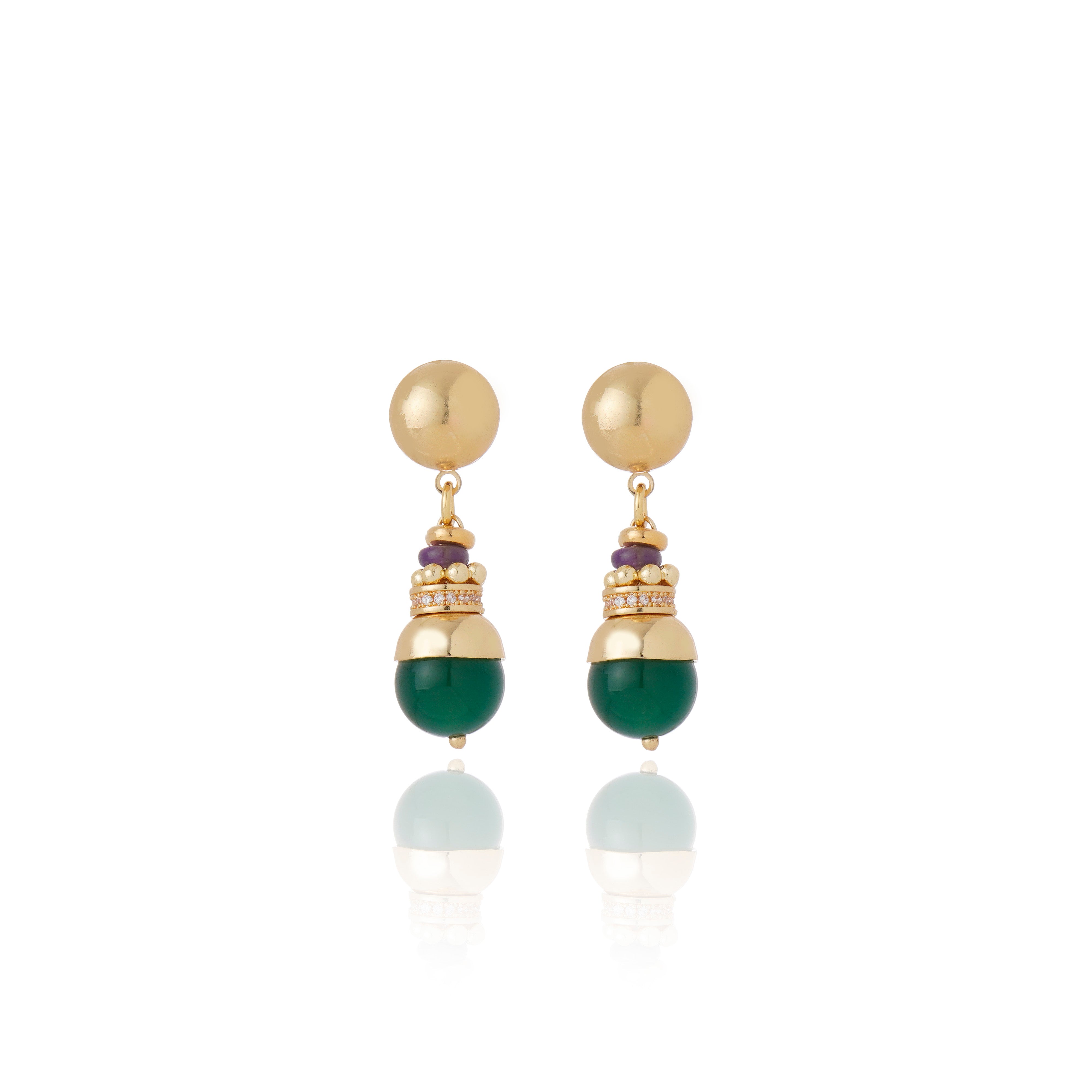 Vibrant and playful, the Sirena Earrings are a celebration of color and craft. With their bold composition of green agate, amethyst, and shimmering zirconia, these earrings capture the spirit of the sea and the richness of Italian artistry. A joyful piece that dances with movement and light.