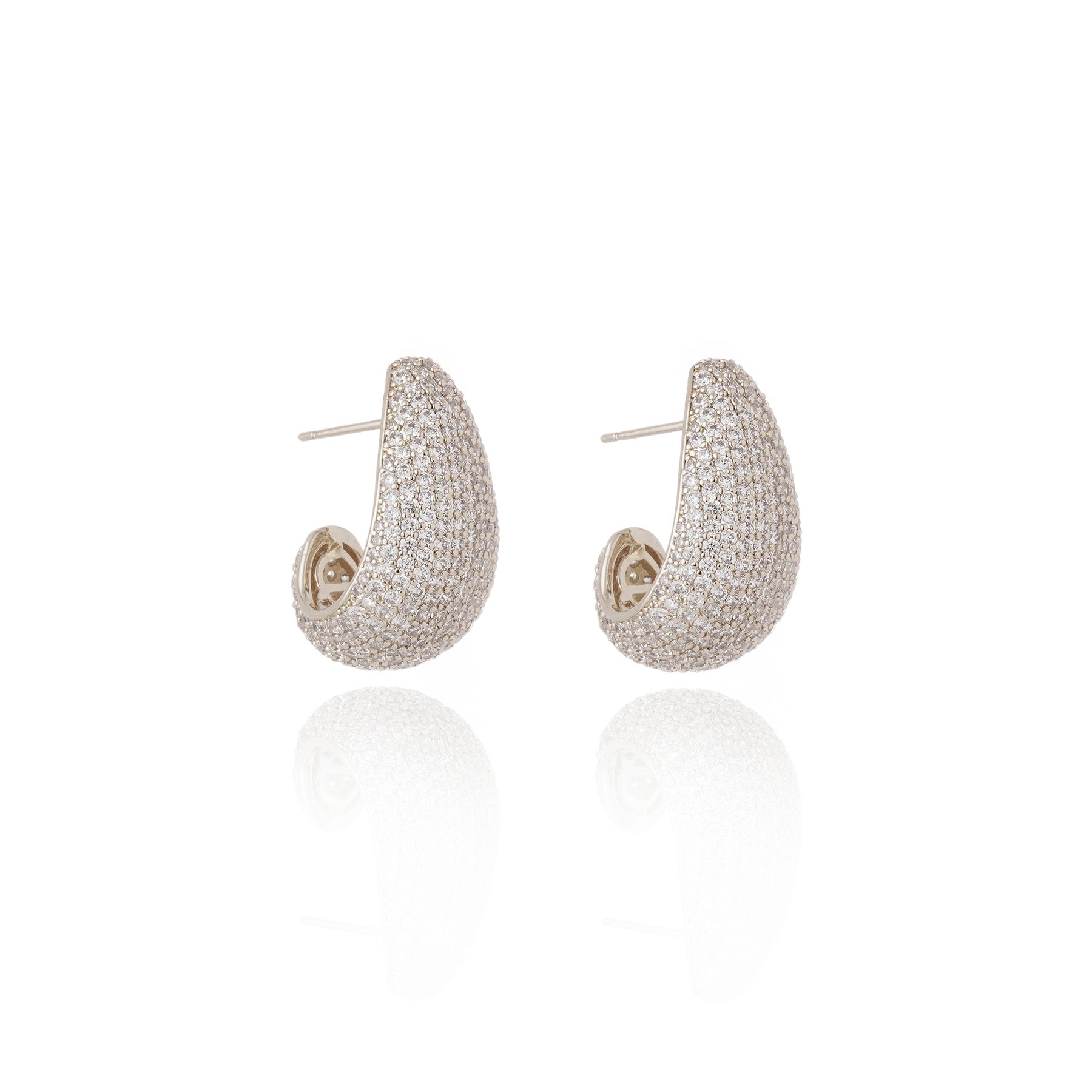 Radiant and sculptural, the Brisino Earrings are designed to embody pure sophistication. Their bold, curved silhouette is entirely encrusted with shimmering pavé zirconias, catching the light from every angle. Finished in sleek rhodium plating, these earrings strike the perfect balance between statement glamour and timeless elegance—ideal for evening looks or adding brilliance to everyday style.