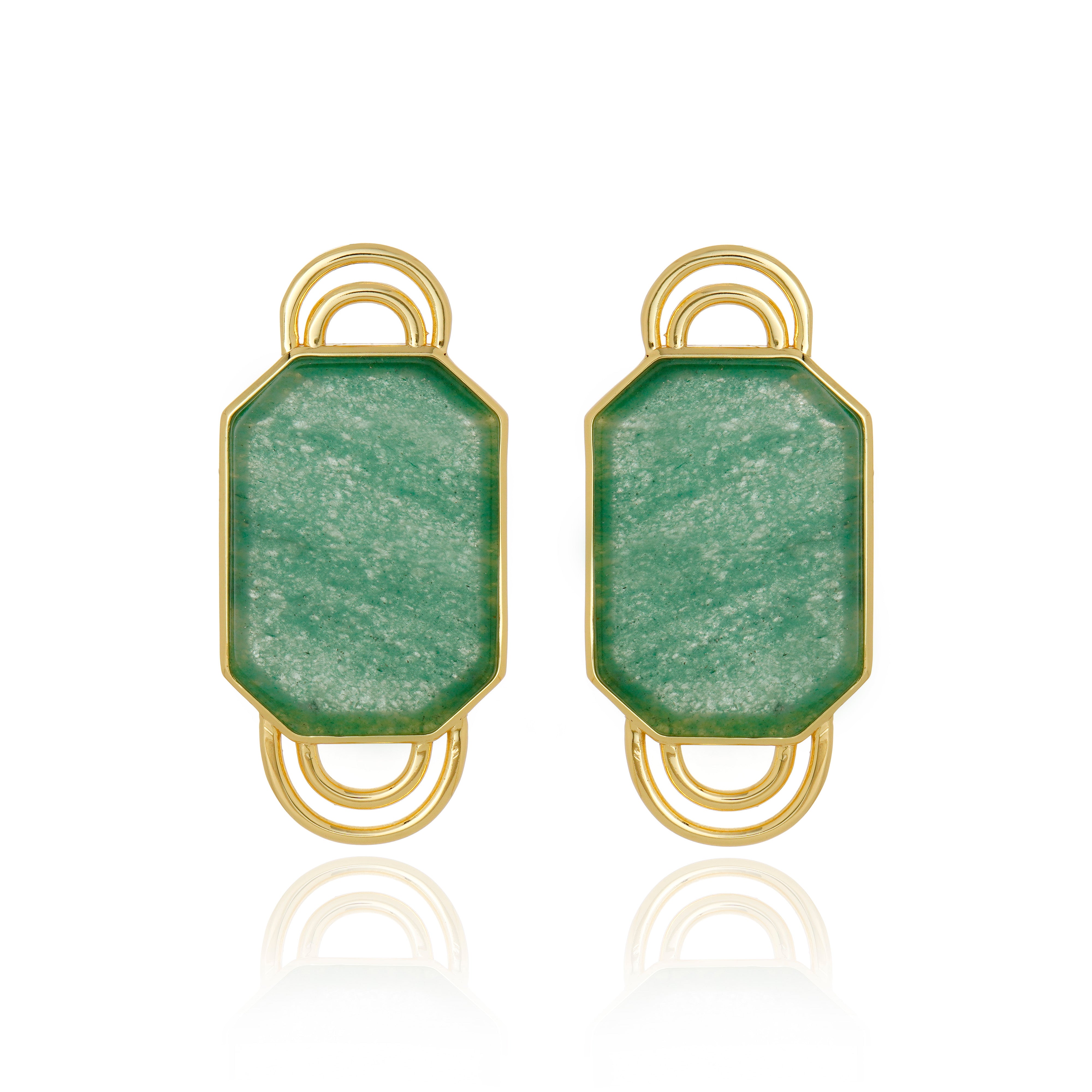 Elevate your style with the Icons Handle Earring, a design that blends contemporary sophistication with timeless allure. Featuring elegant octagonal green aventurine pieces, these earrings are encased in 18K and 24K gold plating over durable bronze, ensuring unmatched quality and brilliance. The rich green hues of aventurine symbolize luck and prosperity, making these earrings a striking yet meaningful accessory. The geometric "handle" detail at both the top and bottom adds a modern, architectural touch.
