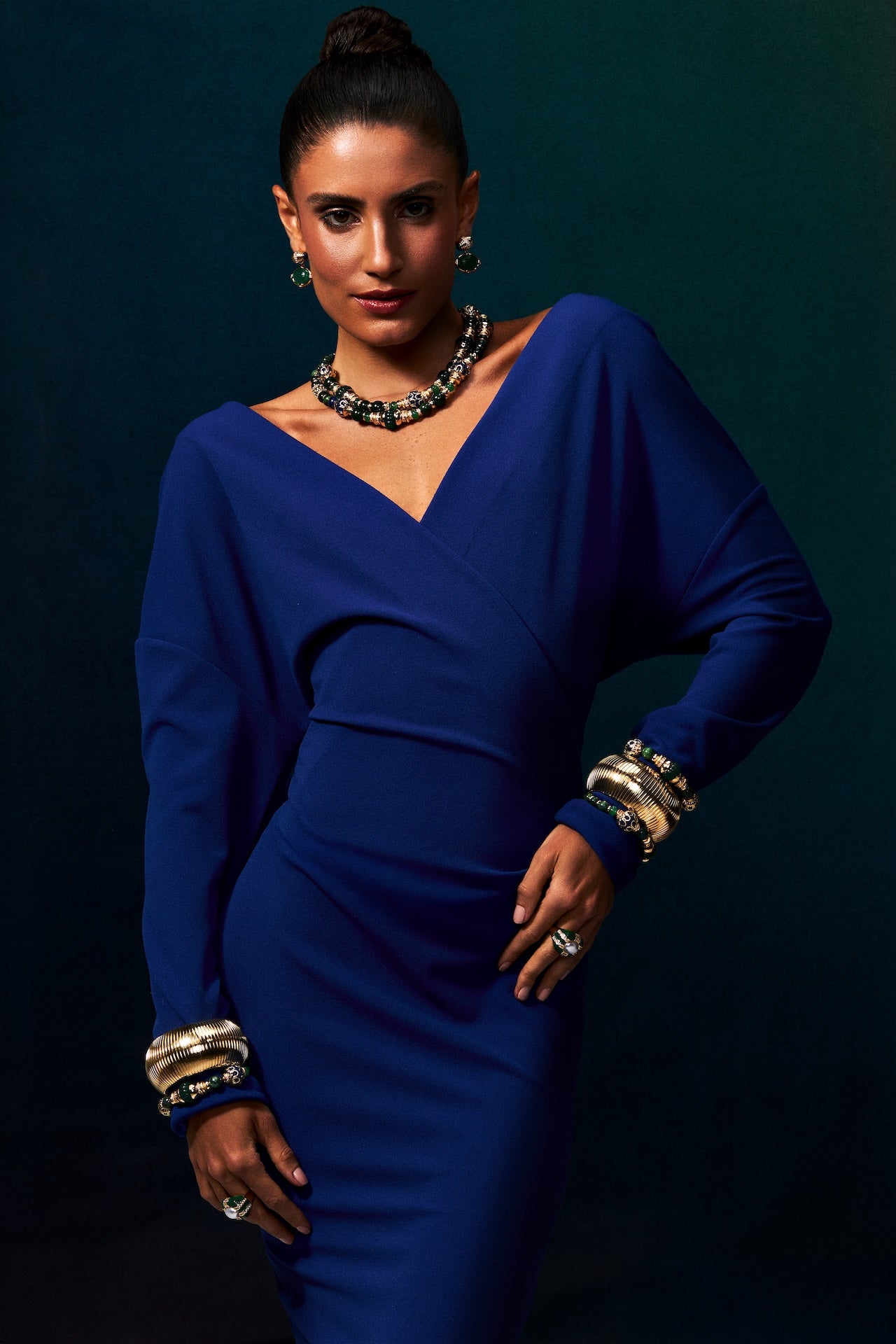 The Segall Necklace Green Agate and Chrysocolla brings together rich natural tones and intricate decorative elements in a refined statement design. Crafted in bronze with 18K and 24K gold plating, the necklace features a sophisticated composition of green agate and chrysocolla stones that create depth and vibrant color throughout the piece. Ornamental gold details and enamel accents add texture and artistry, while the balanced arrangement of stones gives the necklace an elegant yet expressive presence.