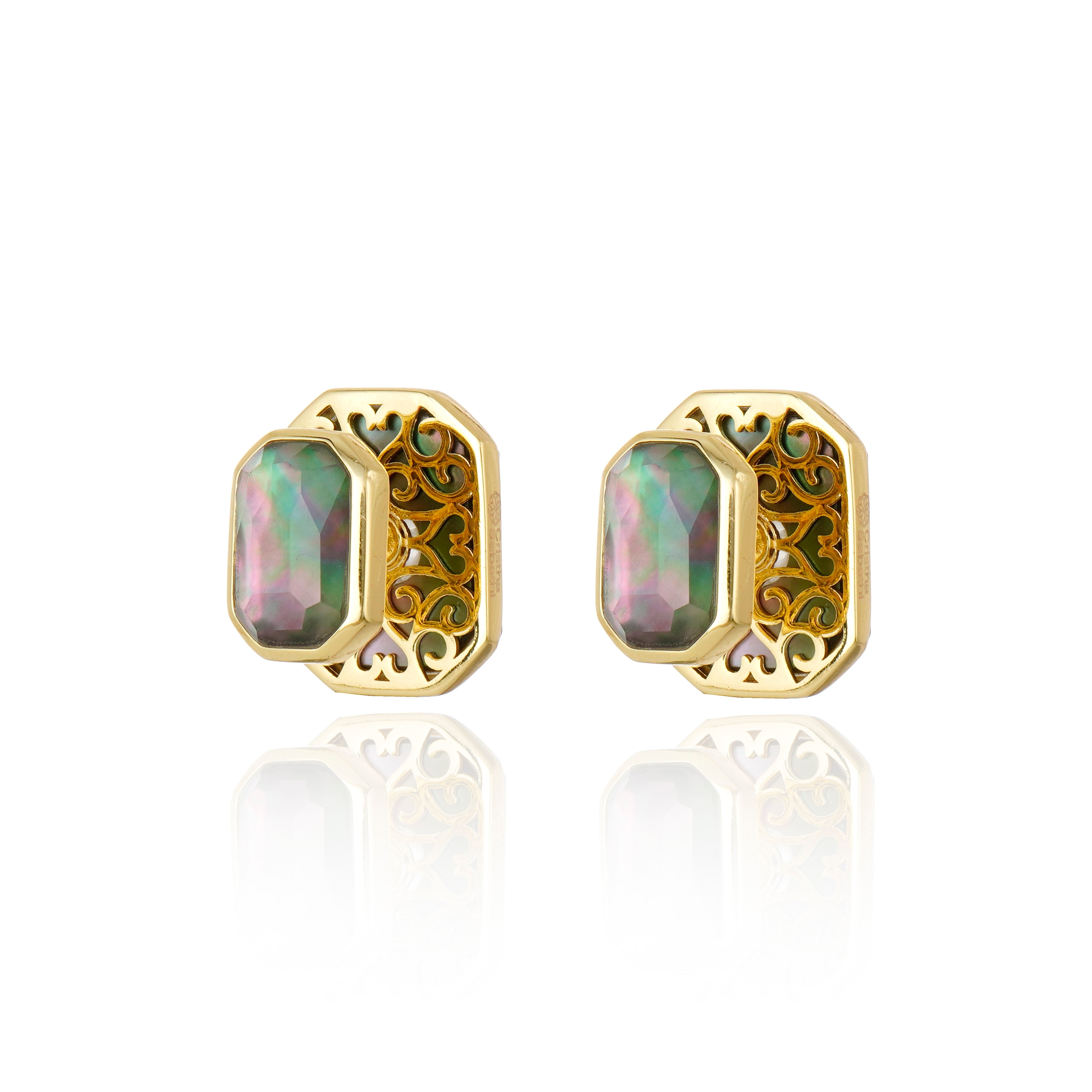 Elevate your style with the Icon Stud Earring, a perfect blend of timeless elegance and modern artistry. Featuring an intricate filigree design inspired by classical motifs, these earrings are adorned with a deep and iridescent black mother-of-pearl centerpiece, radiating mystery and sophistication. The octagonal shape adds a contemporary edge, making them an ideal choice for both formal occasions and daily wear.