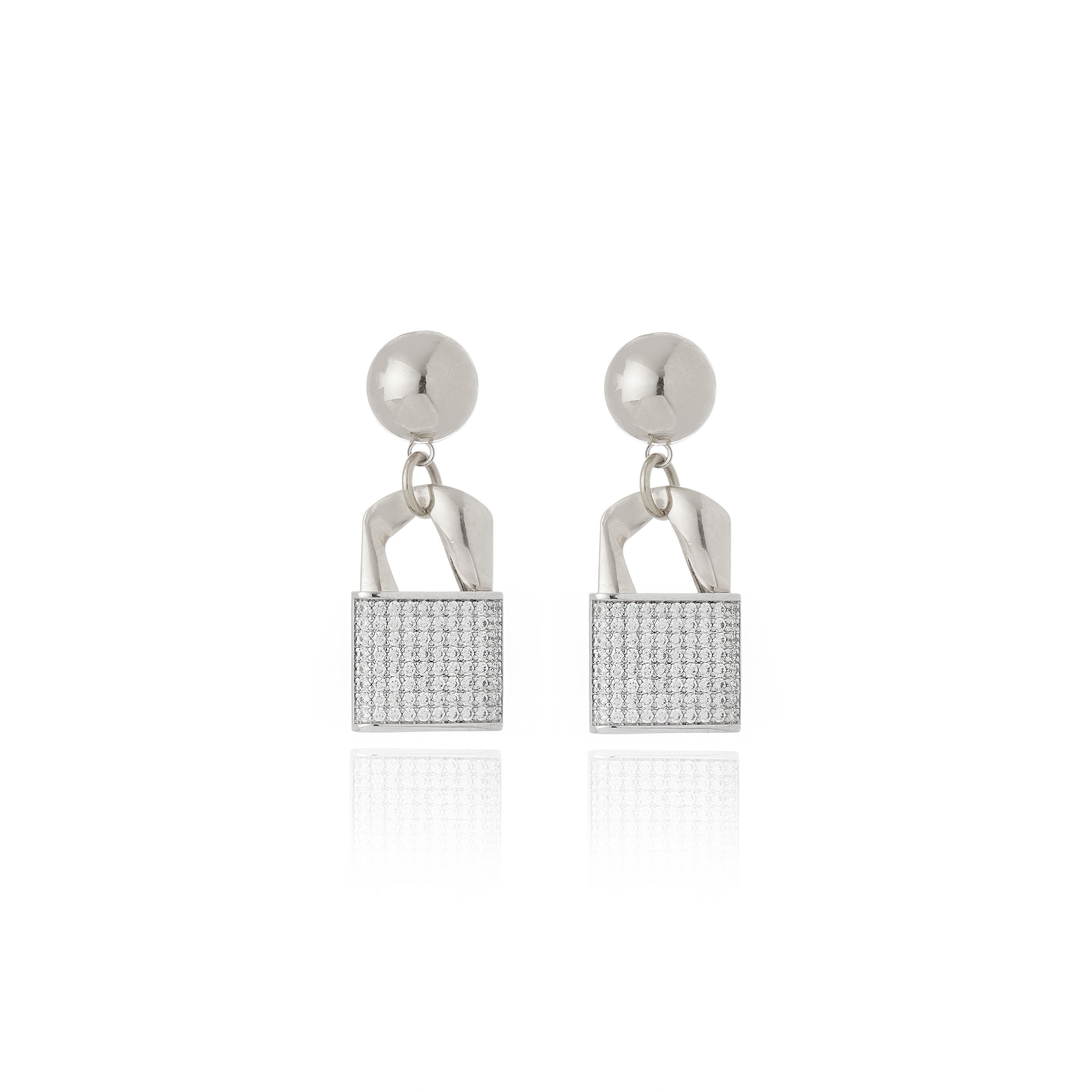 Bold and iconic, the Laguna Dorata Earrings are a statement of modern glamour. Featuring a lock-inspired design with rhodium-plated detailing and shimmering pavé accents, these earrings channel a fearless and contemporary spirit — perfect for the unapologetically stylish.
