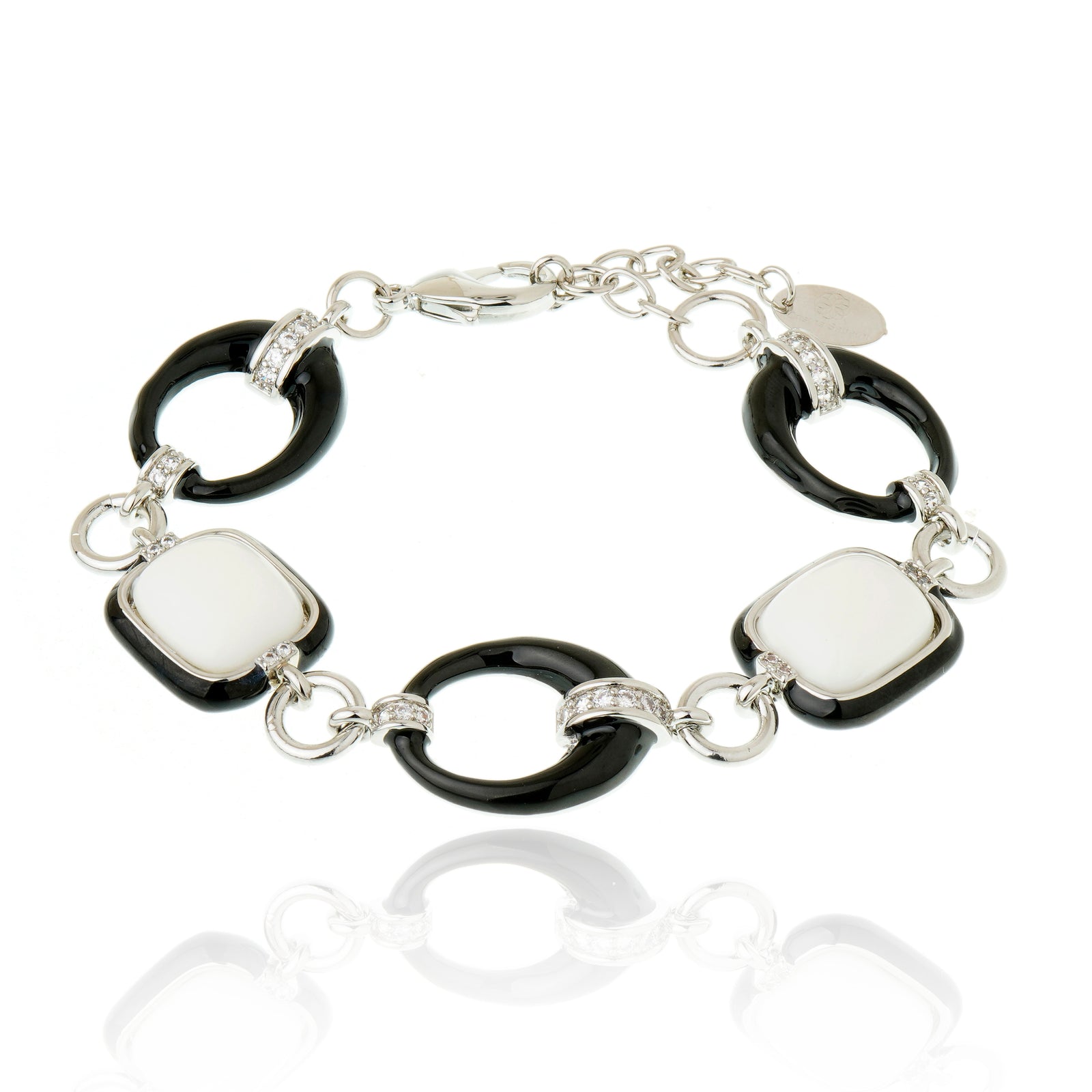 Graceful and architectural, the Incanto Necklace blends geometric elegance with timeless contrast. Featuring smooth black beads, square ivory-toned cabochons, and sculptural black resin links, the necklace culminates in a bold central pendant framed with pavé-set accents. A perfect harmony of form, light, and structure—crafted in Italy to enchant.