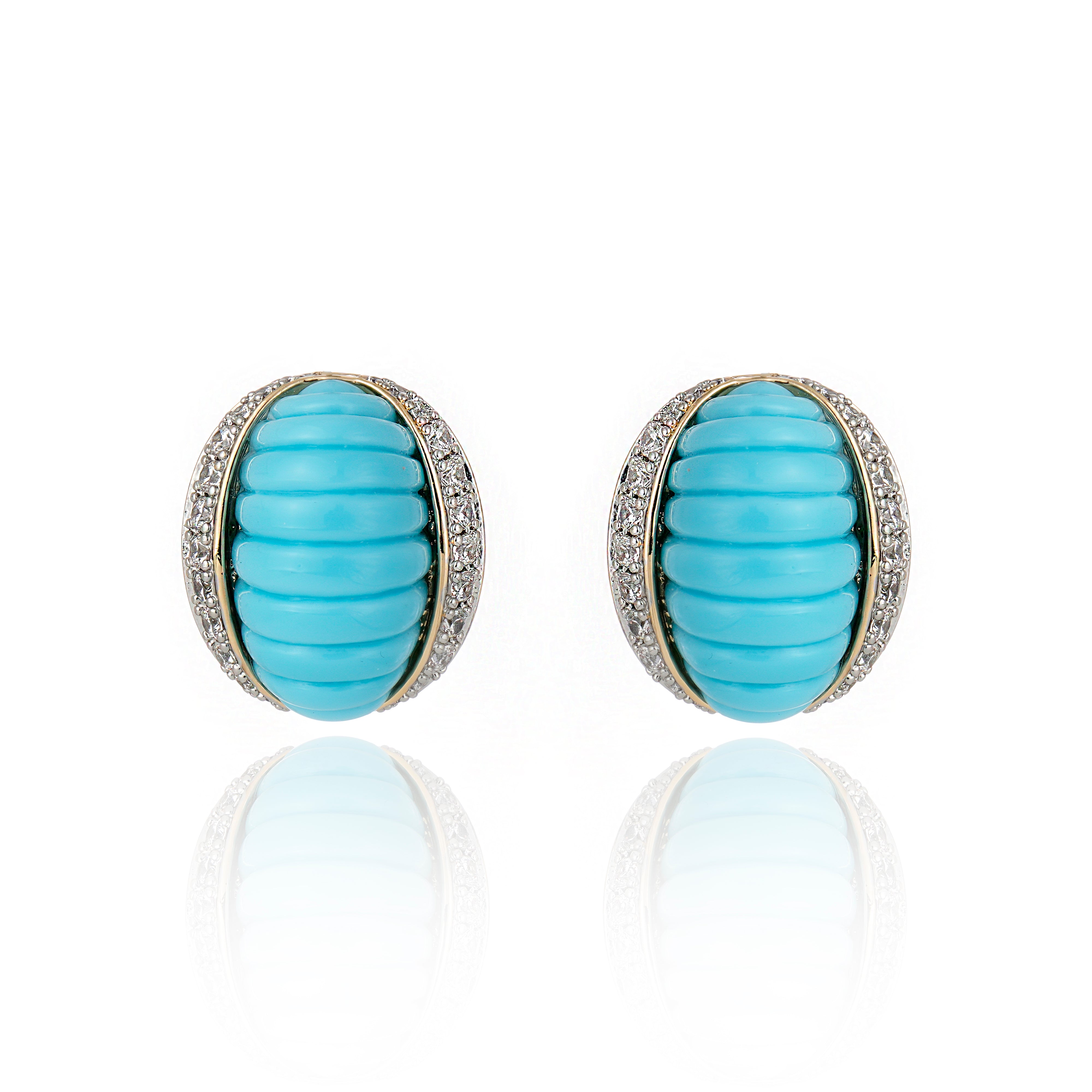 Bold yet refined, the Sogno Earrings capture the dreamy essence of Italian glamour. With sculpted turquoise resin cabochons encased in pavé-set zirconia borders, this luminous pair brings a vintage feel with a contemporary twist. Their rounded silhouette and radiant finish make them an instant statement—effortless, polished, unforgettable.