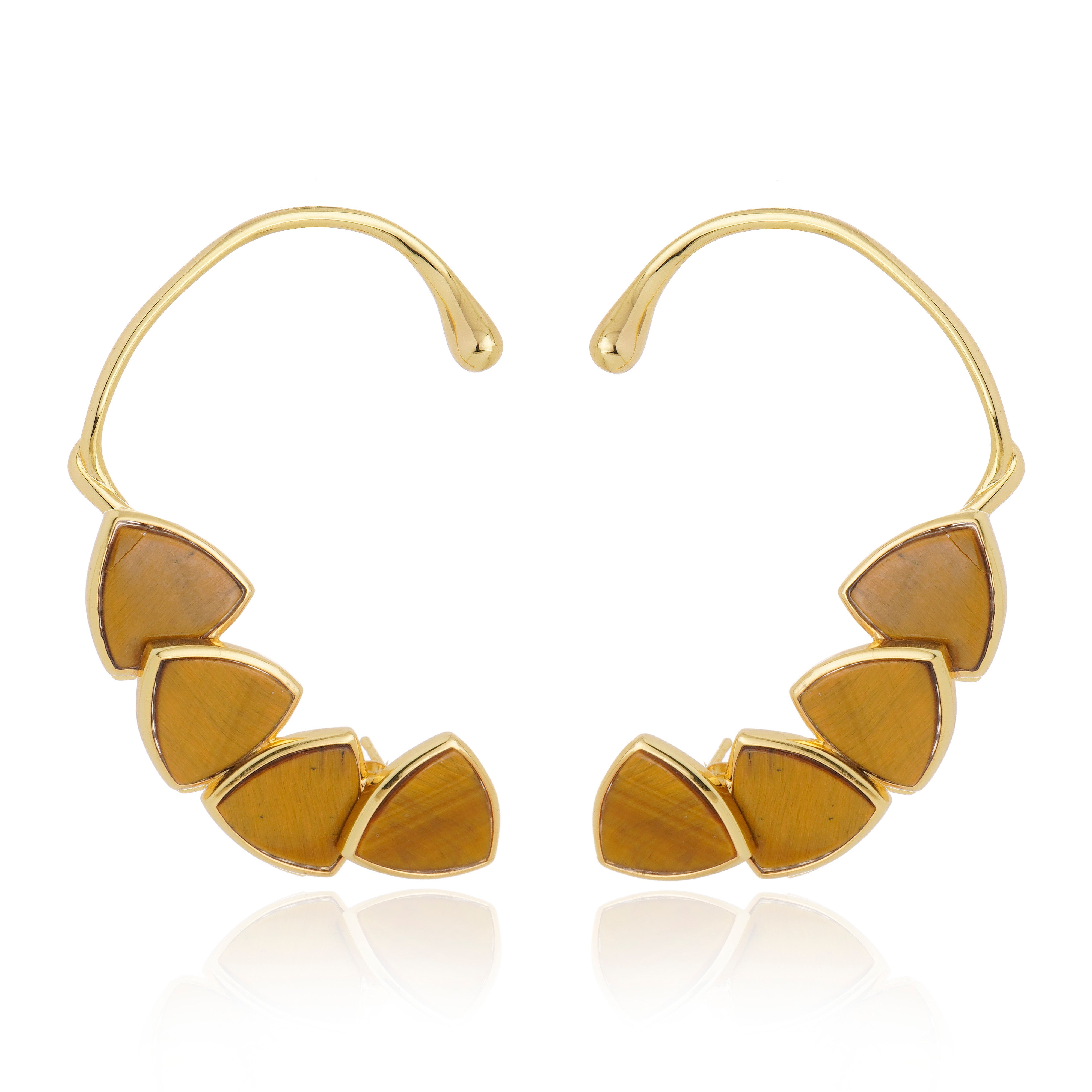 The Aurora Earcuff Earrings embody modern elegance with a sculptural silhouette and the warm, luminous tones of Light Tiger’s Eye. Designed to gently wrap the ear, this open earcuff style features a sequence of polished stone segments framed in gold-plated bronze, creating a fluid balance between structure and softness. Effortlessly chic, these earrings make a refined statement while remaining light, versatile, and contemporary.